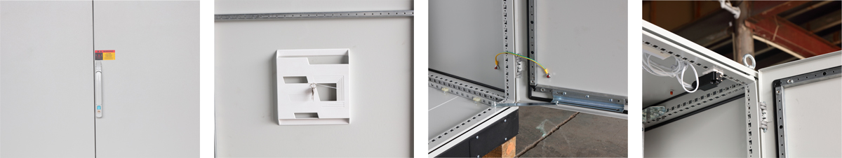 5、機柜標配吊環(huán),門限位,照明燈、燈開關(guān)、檔案袋;